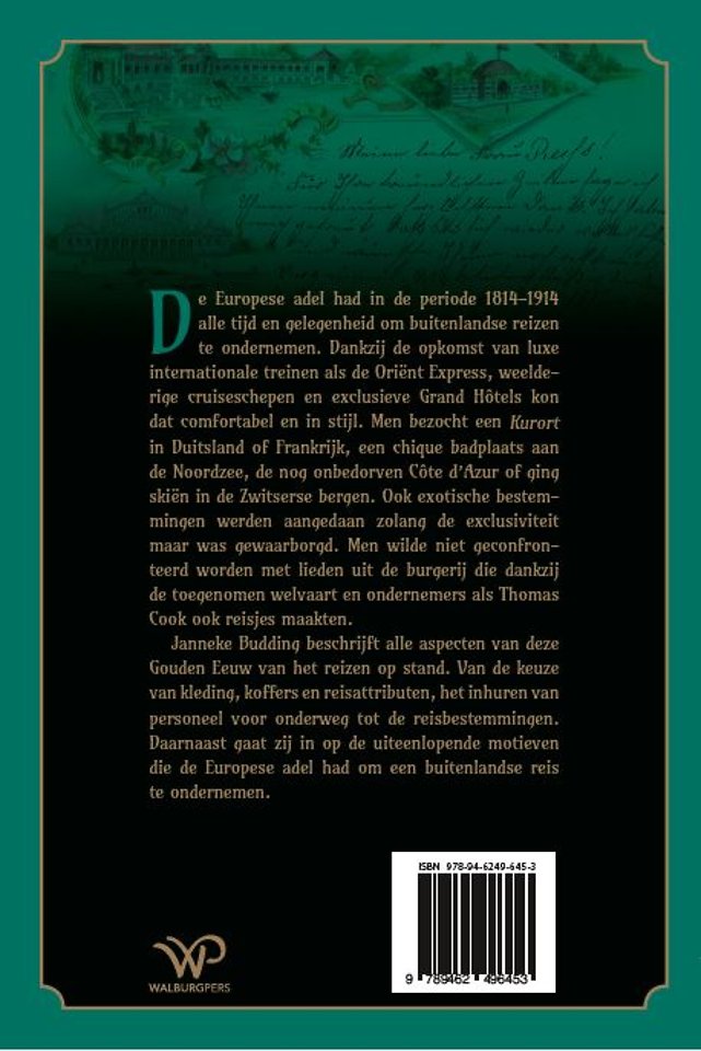 Janneke Budding beschrijft alle aspecten van deze Gouden Eeuw van het reizen op stand. Van de keuze van kleding, koffers en reisattributen, het inhuren van personeel voor onderweg tot de reisbestemmingen. Daarnaast gaat zij in op de uiteenlopende motieven die de Europese adel had om een buitenlandse reis te ondernemen.