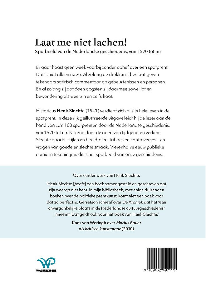'Henk Slechte toont zich een kenner van zowel de beeldtaal als de historische gebeurtenissen die ten grondslag liggen aan de spotprent. Het boek zit ook vol verrassingen en ontdekkingen, en is daarmee een heerlijk boek, zowel voor wie al een beetje thuis is in het genre als wie er nieuw instapt.' – Daniel R. Horst in Lage Landen