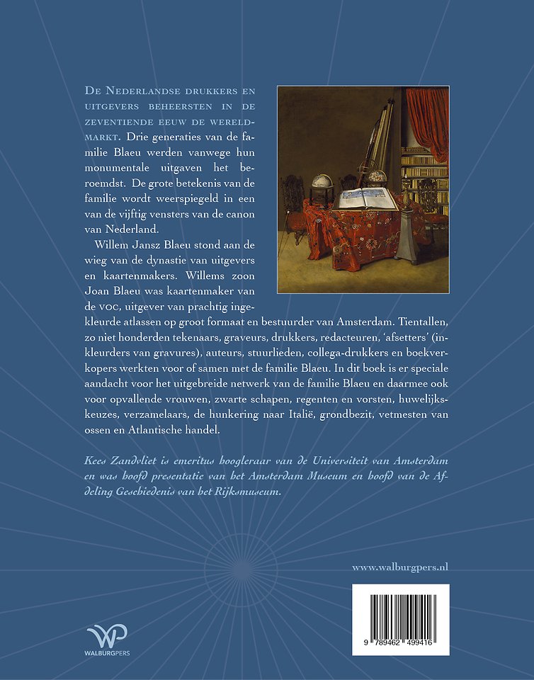 Nederlandse drukkers en uitgevers beheersten in de zeventiende eeuw de wereldmarkt. De familie Blaeu was en is het beroemdst. Willem Jansz. Blaeu stond aan de wieg van de dynastie van uitgevers en kaartenmakers. Willems zoon Joan Blaeu was kaartenmaker van de VOC, uitgever van prachtig ingekleurde atlassen op groot formaat en bestuurder van Amsterdam.