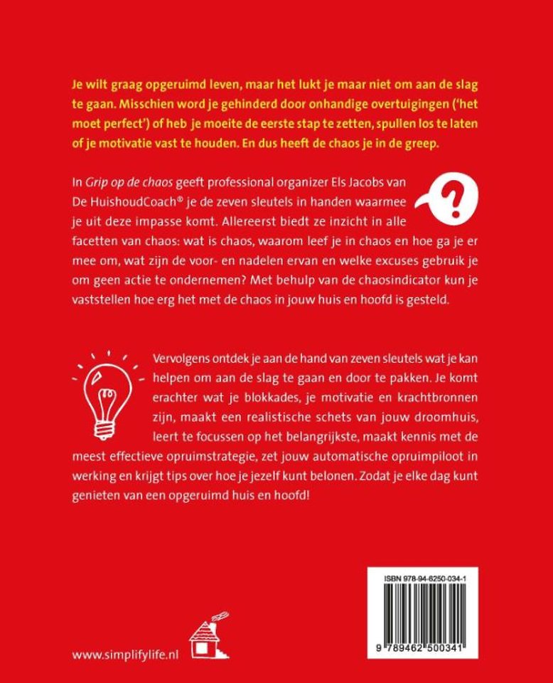 In Grip op de chaos geeft organizer Els Jacobs van De HuishoudCoach de sleutels in handen waarmee je uit deze impasse komt.