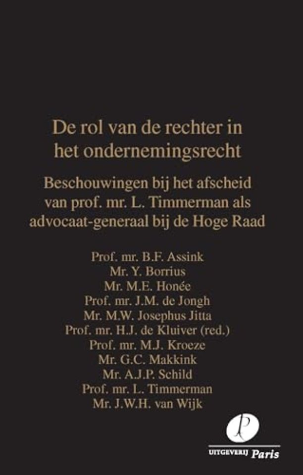 Dit boek is niet slechts ontstaan bij en naar aanleiding van het afscheid van prof. mr. L. (Vino) Timmerman als advocaat-generaal bij de Hoge Raad, en een symposium dat bij die gelegenheid in het gebouw van de Hoge Raad plaatsvond, maar had ongetwijfeld ook een andere inhoud gehad als Timmerman niet de afgelopen 17 jaar als advocaat-generaal de belangrijkste adviseur van de Hoge Raad zou zijn geweest op het terrein van het ondernemingsrecht. In die 17 jaar hebben de vele conclusies van zijn hand, en de daarin vervatte en daarmee geïmpliceerde adviezen aan de Hoge Raad, immers groot gezag gehad en de ontwikkeling van het ondernemingsrecht zeer beïnvloed.