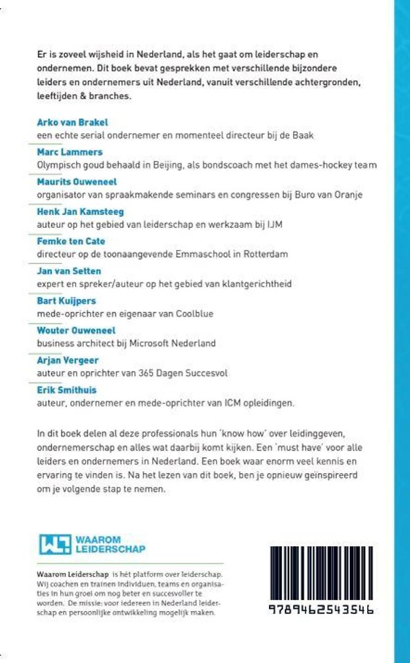 Er is zoveel wijsheid in Nederland, als het gaat om leiderschap en ondernemen. Dit boek bevat gesprekken met verschillende bijzondere leiders en ondernemers uit Nederland, vanuit verschillende achtergronden, leeftijden & branches.