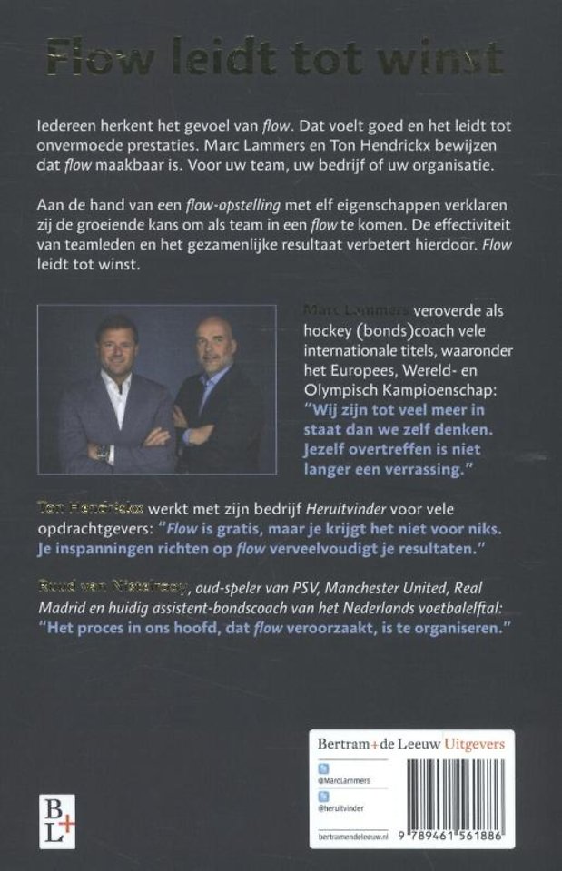 Meer over de auteursIedereen herkent het gevoel van flow. Dat voelt goed en het leidt tot onvermoede prestaties. Marc Lammers en Ton Hendrickx bewijzen dat flow maakbaar is. Voor uw team, uw bedrijf of uw organisatie.