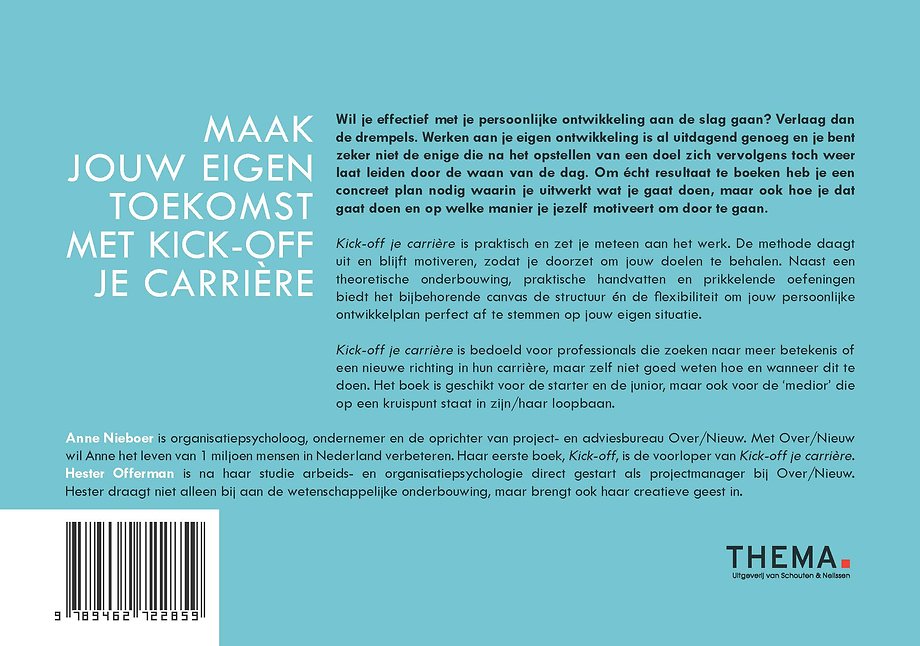 'Kick-off je carrière' is praktisch en zet je als lezer meteen aan het werk. De methode daagt uit en blijft motiveren, zodat je doorzet om jouw doelen te behalen. Naast theoretische onderbouwing, praktische handvatten en prikkelende oefeningen, biedt het bijbehorende canvas de structuur én de flexibiliteit om je persoonlijke ontwikkelplan perfect af te stemmen op jouw eigen situatie.