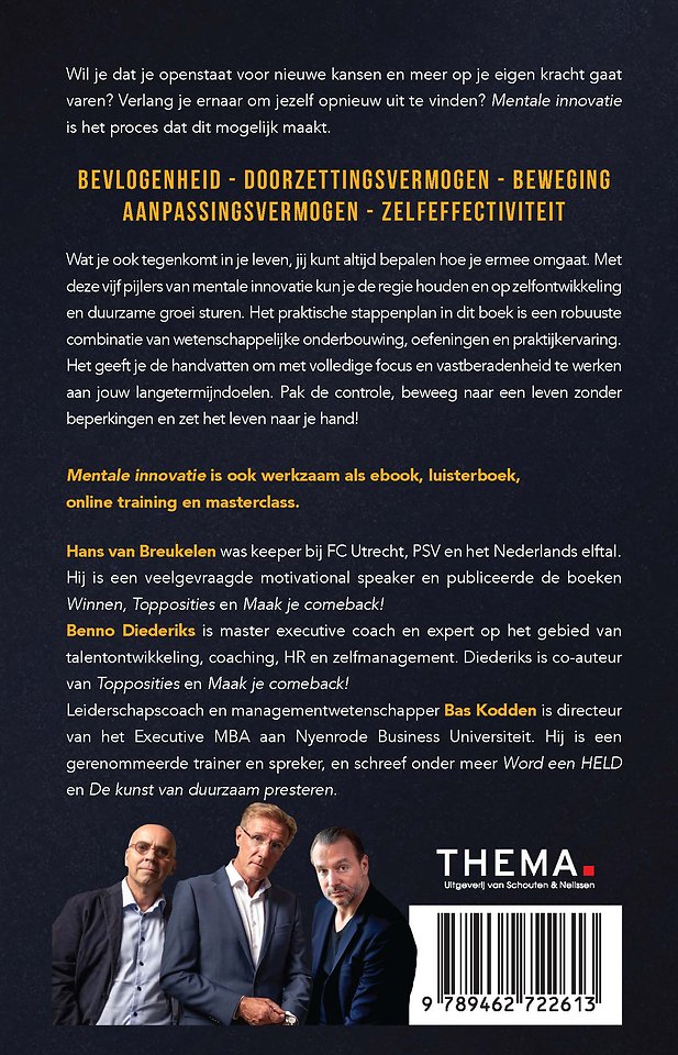 Dezelfde vragen kun jij jezelf stellen. Wat is jouw vernieuwing? Hoe ga jij het leven naar je hand zetten? Hoe zorg je dat je openstaat voor nieuwe kansen en vaart op je eigen kracht? Van Breukelen, Kodden & Diederiks noemen dit 'mentale innovatie', een begrip dat al enige tijd genoemd wordt in publicaties, maar nog geen eigen podium heeft gekregen.