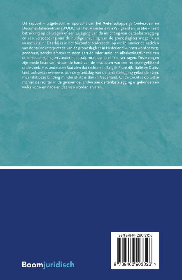 Dit rapport – uitgebracht in opdracht van het Wetenschappelijk Onderzoek- en Documentatiecentrum (WODC) van het Ministerie van Veiligheid en Justitie – heeft betrekking op de vragen of een wijziging van de inrichting van de tenlastelegging en een versoepeling van de huidige invulling van de grondslagleer mogelijk en wenselijk zijn. Daarbij is in het bijzonder onderzocht op welke manier de nadelen van de strikte interpretatie van de grondslagleer in Nederland kunnen worden weggenomen, zonder afbreuk te doen aan de informatie- en afbakeningsfunctie van de tenlastelegging en zonder het strafproces aanzienlijk te vertragen. Deze vragen zijn mede beantwoord aan de hand van de resultaten van een rechtsvergelijkend onderzoek.