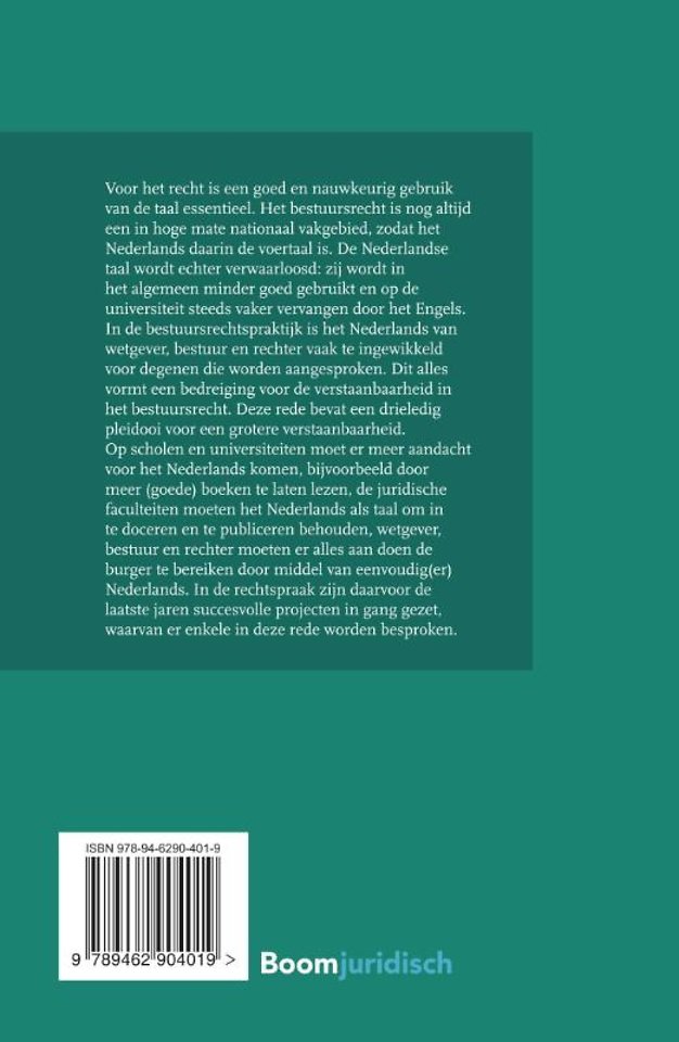 Voor het recht is een goed en nauwkeurig gebruik van de taal essentieel. Het bestuursrecht is nog altijd een in hoge mate nationaal vakgebied, zodat het Nederlands daarin de voertaal is. De Nederlandse taal wordt echter verwaarloosd: zij wordt in het algemeen minder goed gebruikt en op de universiteit steeds vaker vervangen door het Engels. In de bestuursrechtspraktijk is het Nederlands van wetgever, bestuur en rechter vaak te ingewikkeld voor degenen die worden aangesproken. Dit alles vormt een bedreiging voor de verstaanbaarheid in het bestuursrecht.