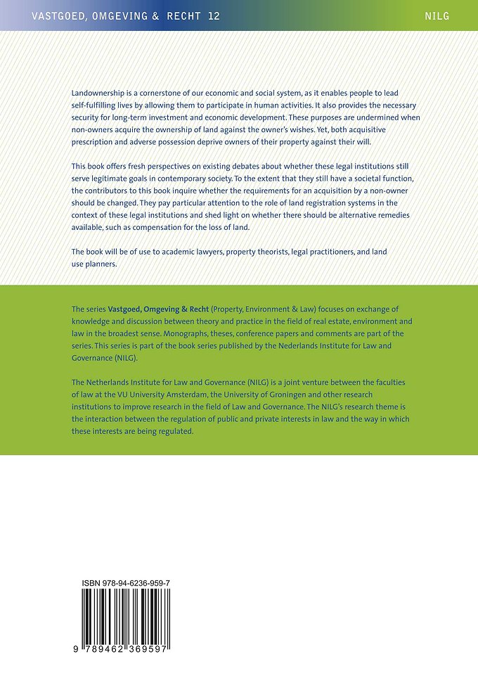 This book offers fresh perspectives on existing debates about whether these legal institutions still serve legitimate goals in contemporary society. To the extent that they still have a societal function, the contributors to this book inquire whether the requirements for an acquisition by a non-owner should be changed. They pay particular attention to the role of land registration systems in the context of these legal institutions and shed light on whether there should be alternative remedies available, such as compensation for the loss of land.