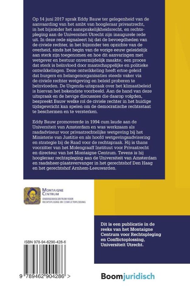 civiele rechter democratische rechtsstaat politiek wetgeving overheid bevoegdheden checks and balances collectief actierecht klimaatbeleid urgenda rechtspleging machtenscheiding staatsrecht bestuursrecht maatschappelijke ontwikkelingen aansprakelijkheidsrecht privaatrecht rechterlijke macht civiele procedure belangenorganisaties grondrechten rechtsbescherming inaugurele rede constitutioneel recht rechtszekerheid milieu publiekrecht rechtsgang
