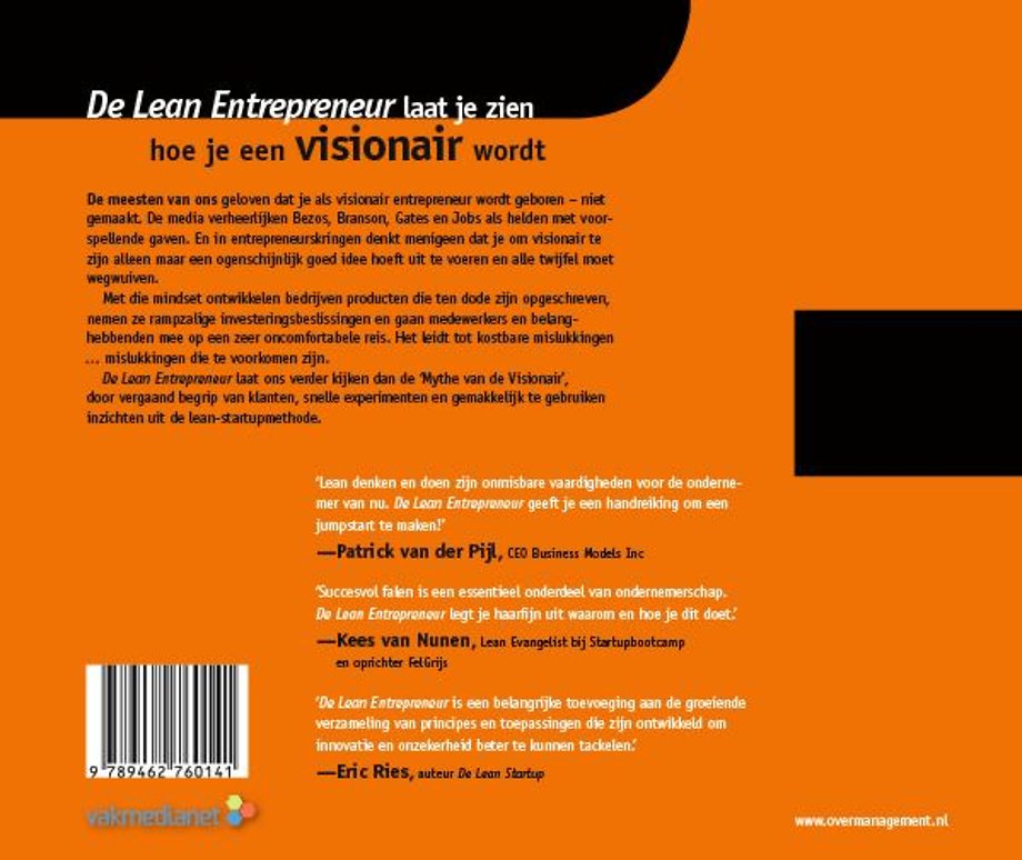 "Lean denken en doen zijn onmisbare vaardigheden voor de ondernemer van nu. 'De Lean Entrepreneur' geeft je een handreiking om een jumpstart te maken!" - Patrick van der Pijl, CEO Business Models Inc
