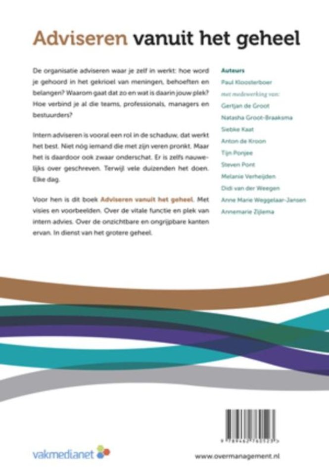 Voor hen is dit boek 'Adviseren vanuit het geheel'. Met visies en voorbeelden. Over de vitale functie en plek van intern advies. Over de onzichtbare en ongrijpbare kanten ervan. In dienst van het grotere geheel.