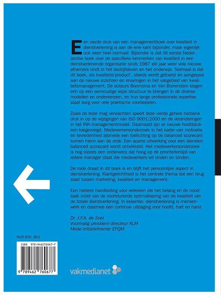 Bijzonder is dat dit boek over de specifieke kenmerken van kwaliteit in de dienstverlenende organisatie sinds 1987 elk jaar weer vele nieuwe afnemers vindt in het bedrijfsleven en het onderwijs. Normaal is dat dit boek, als 'kwaliteitsproduct', steeds wordt getoetst en aangepast aan de nieuwe inzichten en ervaringen in het vakgebied van kwaliteitsmanagement.