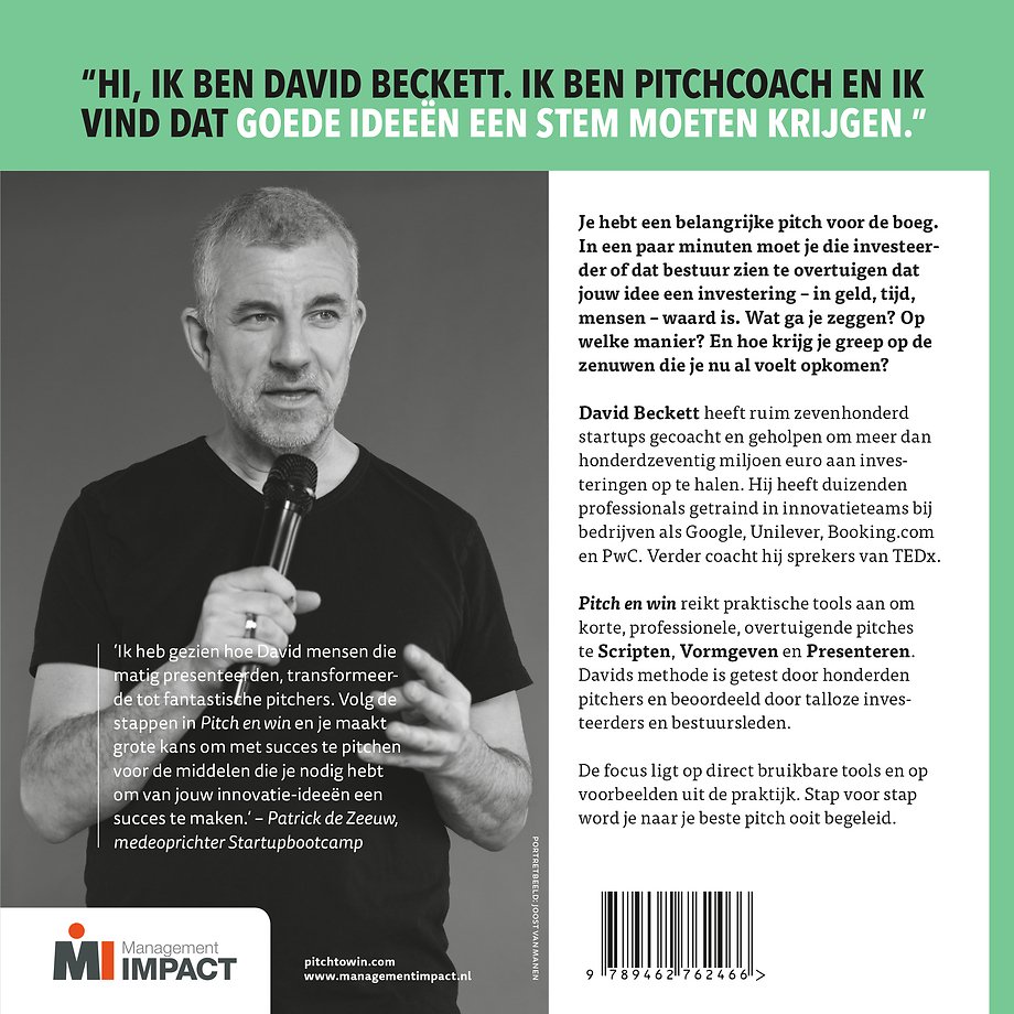 Hi, ik ben David Beckett. Ik ben pitchcoach en ik vind dat geweldige ideeën een stem moeten krijgen.