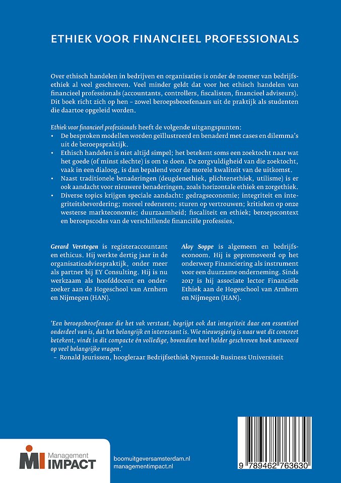 Meer over de auteursOver ethisch handelen in bedrijven en organisaties is onder de noemer van bedrijfsethiek al veel geschreven. Veel minder geldt dat voor het ethisch handelen van financieel professionals (accountants, controllers, fiscalisten, financieel adviseurs). Dit boek richt zich op hen – zowel beroepsbeoefenaars uit de praktijk als studenten die daartoe opgeleid worden.