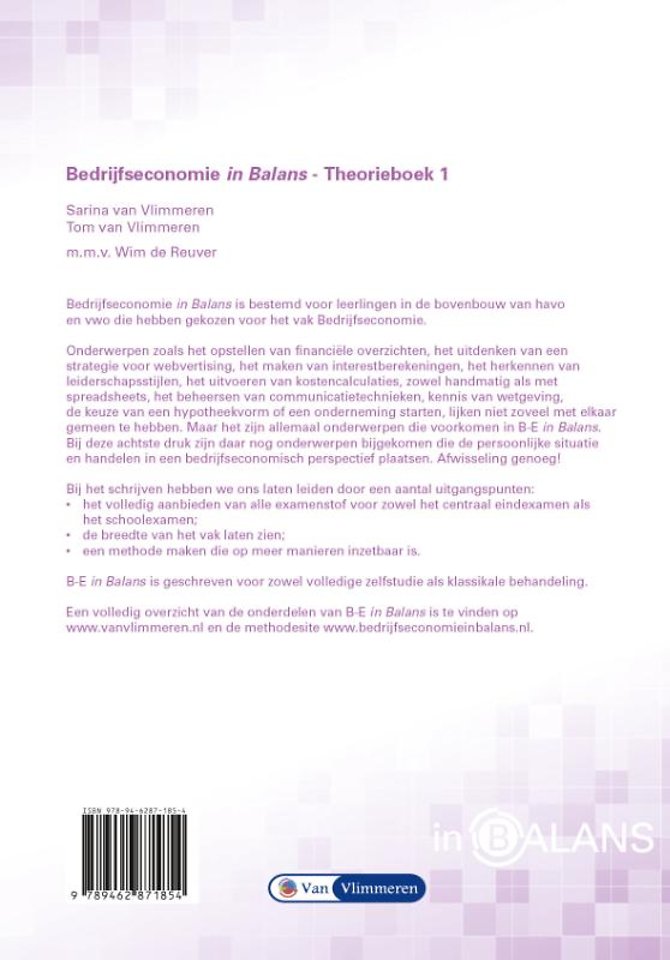 Bedrijfseconomie in Balans is bestemd voor leerlingen in de bovenbouw van havo en vwo die hebben gekozen voor het vak Bedrijfseconomie.