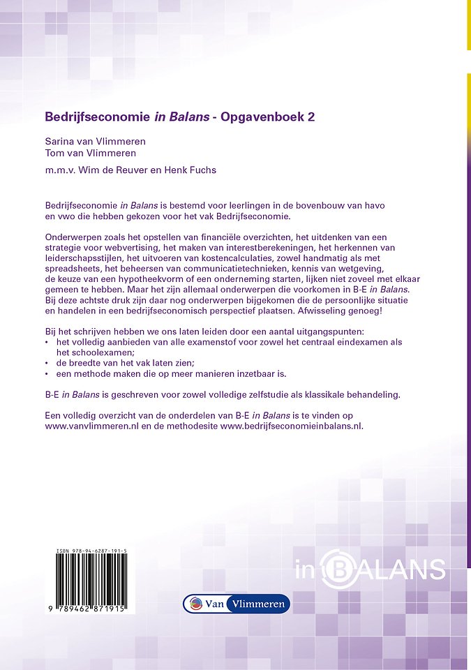 Bedrijfseconomie in Balans vwo Opgavenboek 2