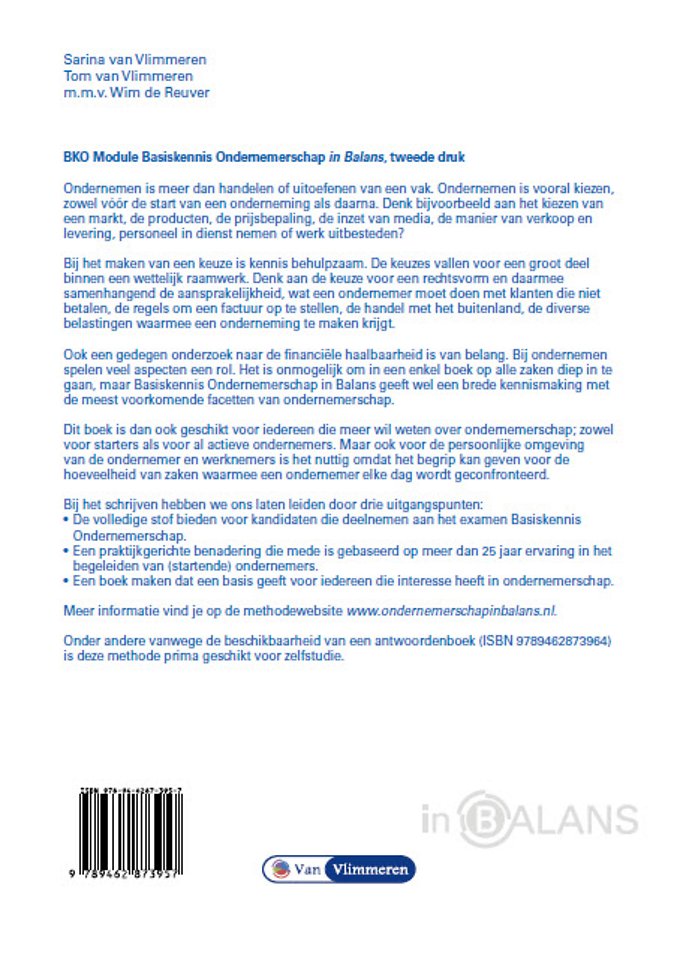 Basiskennis Ondernemerschap in Balans geeft een brede kennismaking met de meest voorkomende facetten van ondernemerschap.