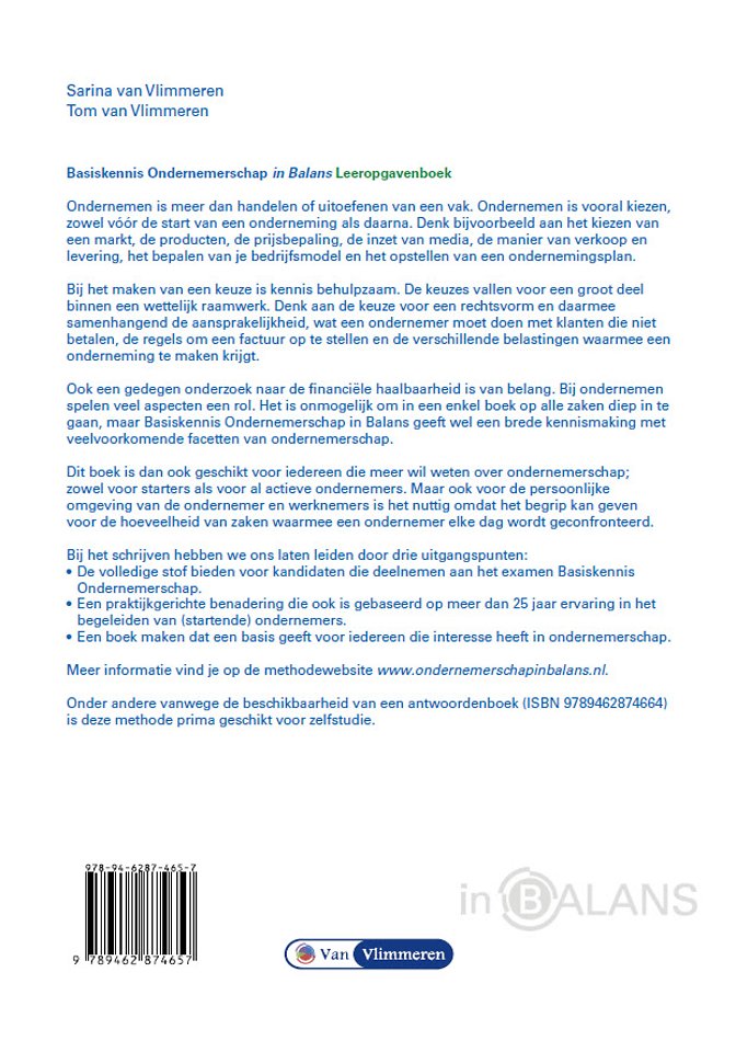 Meer informatie vind je op de methodewebsite www.ondernemerschapinbalans.nl. Onder andere vanwege de beschikbaarheid van een antwoordenboek is deze methode prima geschikt voor zelfstudie.