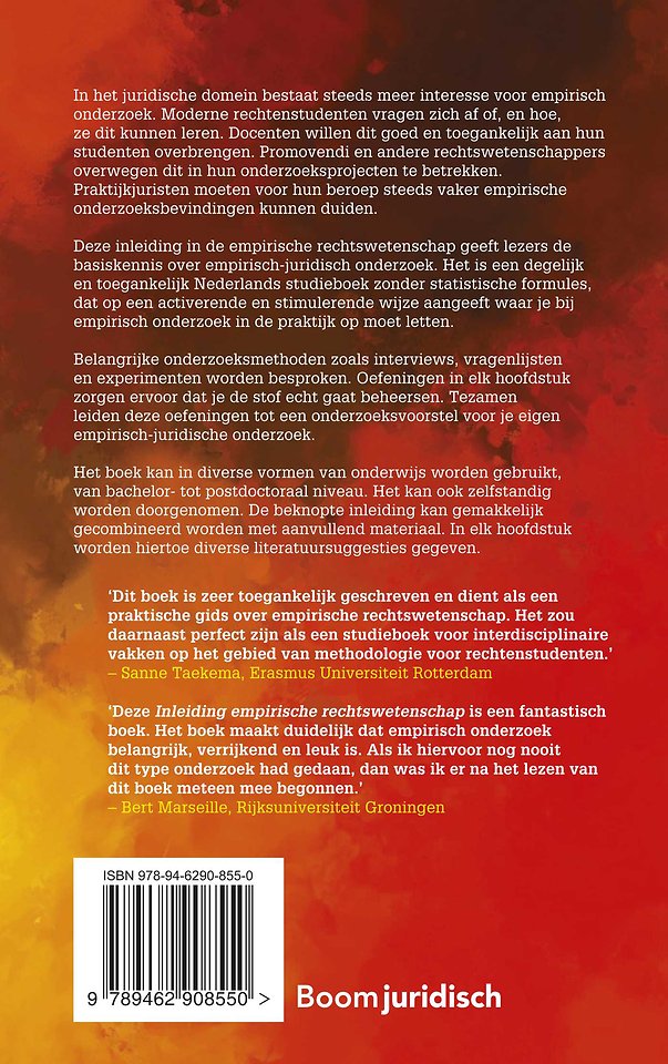 In het juridische domein bestaat steeds meer interesse voor empirisch onderzoek. Moderne rechtenstudenten vragen zich af of, en hoe, ze dit kunnen leren. Docenten willen dit goed en toegankelijk aan hun studenten overbrengen. Promovendi en andere rechtswetenschappers overwegen dit in hun onderzoeksprojecten te betrekken. Praktijkjuristen moeten voor hun beroep steeds vaker empirische onderzoeksbevindingen kunnen duiden.