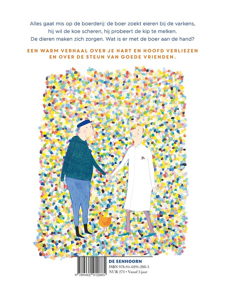 Alles gaat mis op de boerderij. De boer zoekt eieren bij de varkens, wil de koe scheren en probeert de kip te melken. De dieren maken zich zorgen. De boer is er niet met zijn hoofd bij. Hij is verliefd op de dierenarts! Maar dat durft hij niet goed te zeggen, hij is te verlegen. Gelukkig bedenken de dieren een plan.