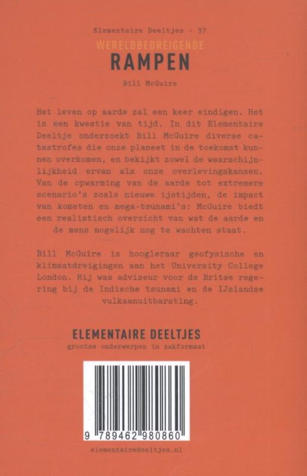 Het leven op aarde zal een keer eindigen. Het is enkel een kwestie van tijd. In dit Elementaire Deeltje onderzoekt Bill McGuire de diverse catastrofes die onze planeet in de toekomst zouden kunnen overkomen, en bekijkt zowel de waarschijnlijkheid ervan als onze overlevingskansen, mocht het zover komen. Van de opwarming van de aarde tot extremere scenario's zoals nieuwe ijstijden, de impact van kometen, supervulkanen en mega-tsunami's: Bill McGuire biedt een realistisch overzicht van wat de aarde en de mens mogelijk nog te wachten staat.