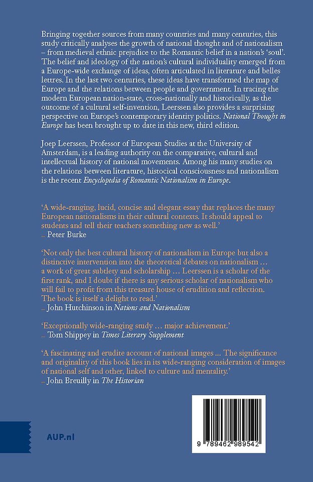 Bringing together sources from many countries and many centuries, this study critically analyses the growth of national thought and of nationalism — from medieval ethnic prejudice to the Romantic belief in a nation’s ‘soul’. The belief and ideology of the nation’s cultural individuality emerged from a Europe-wide exchange of ideas, often articulated in literature and 'belles lettres'. In the last two centuries, these ideas have transformed the map of Europe and the relations between people and government. In tracing the modern European nation-state, cross-nationally and historically, as the outcome of a cultural self-invention, Leerssen also provides a surprising perspective on Europe’s contemporary identity politics.