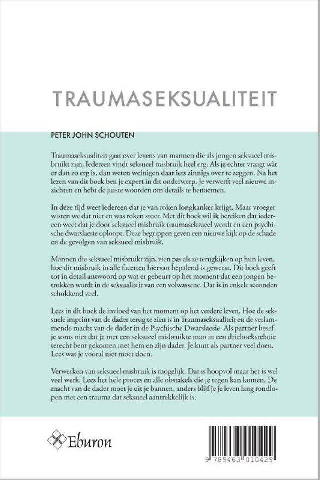 'Traumaseksualiteit' gaat over levens van mannen die als jongen seksueel misbruikt zijn. Iedereen vindt seksueel misbruik heel erg. Als je echter vraagt wàt er dan zo erg is, dan weten weinigen daar iets zinnigs over te zeggen. Na het lezen van dit boek ben je expert in dit onderwerp. Je verwerft veel nieuwe inzichten en hebt de juiste woorden om details te benoemen.