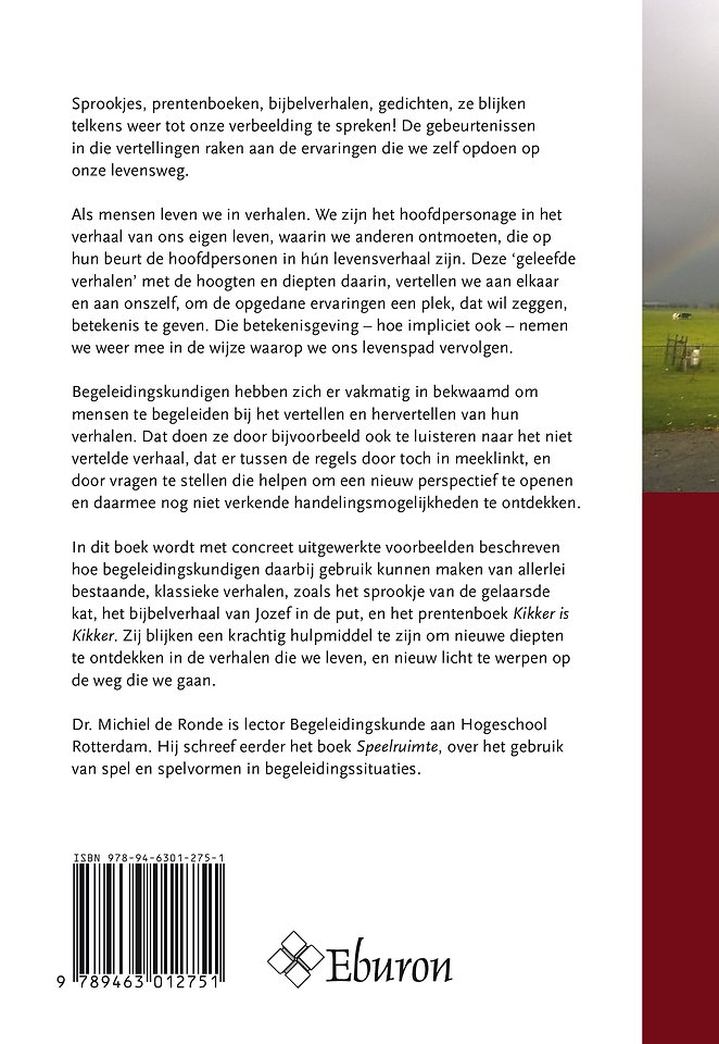 In dit boek wordt met concreet uitgewerkte voorbeelden beschreven hoe begeleidingskundigen daarbij gebruik kunnen maken van allerlei bestaande, klassieke verhalen, zoals het sprookje van de gelaarsde kat, het bijbelverhaal van Jozef in de put, en het prentenboek Kikker is Kikker. Zij blijken een krachtig hulpmiddel te zijn om nieuwe diepten te ontdekken in de verhalen die we leven, en nieuw licht te werpen op de weg die we gaan.