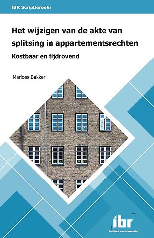 In deze scriptie is onderzoek gedaan naar de procedure voor de wijziging van de akte van splitsing in appartementsrechten. Bij de ontwikkeling van de huidige wettelijke regeling is onvoldoende rekening gehouden met de praktische uitwerking ervan. De aanpassing van de regeling in 2005 is een goede stap geweest richting meer flexibiliteit, maar de procedure sluit nog steeds niet goed aan op de praktijk en is onnodig kostbaar en tijdrovend.