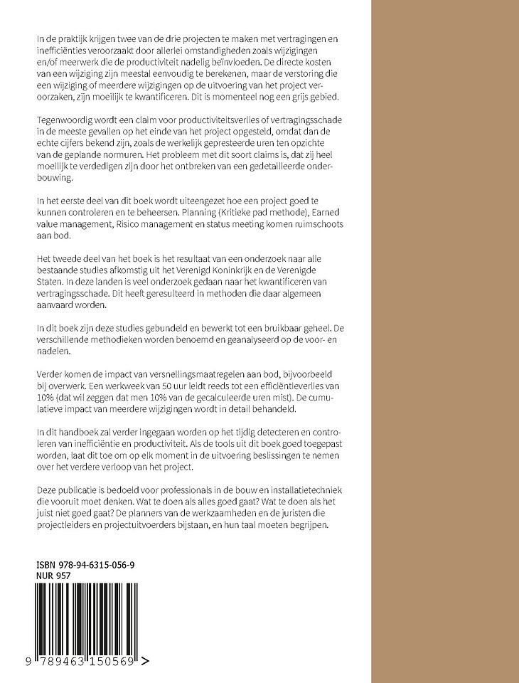 Deze publicatie is bedoeld voor professionals in de bouw en installatietechniek die vooruit moeten denken. Wat te doen als alles goed gaat? Wat te doen als het juist niet goed gaat? De planners van de werkzaamheden en de juristen die projectleiders en projectuitvoerders bijstaan, en hun taal moeten begrijpen.