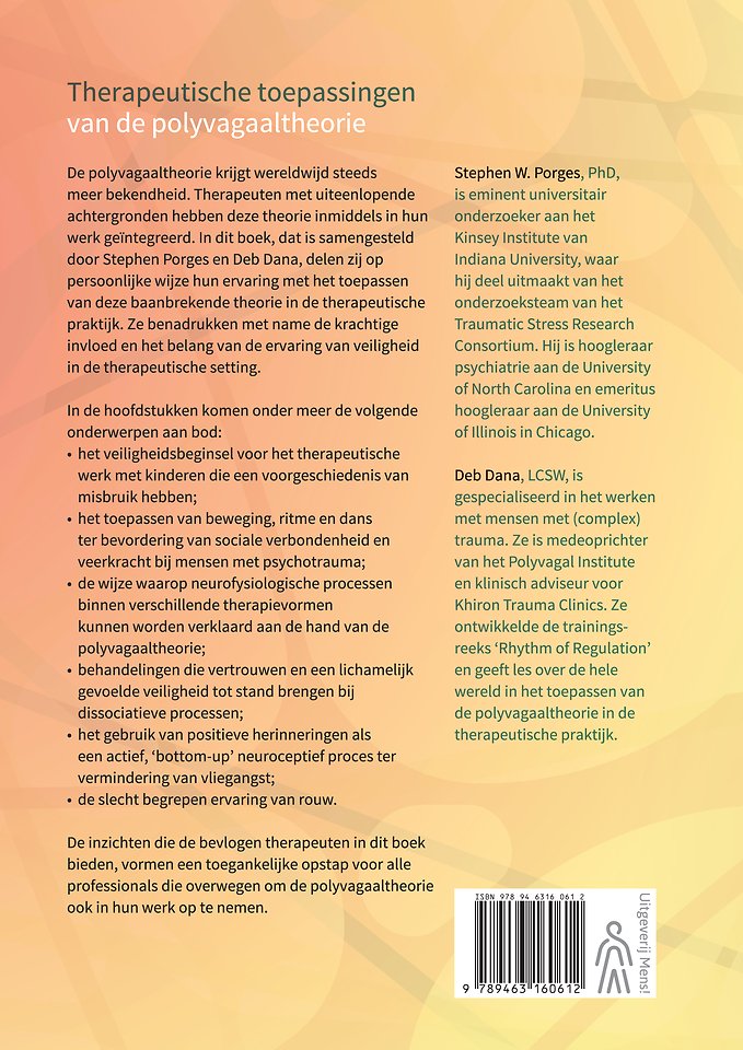 De polyvagaaltheorie krijgt wereldwijd steeds meer bekendheid. Therapeuten met uiteenlopende achtergronden hebben deze theorie inmiddels in hun werk geïntegreerd. In dit boek, dat is samengesteld door Stephen Porges en Deb Dana, delen zij op persoonlijke wijze hun ervaring met het toepassen van deze baanbrekende theorie in de therapeutische praktijk. Ze benadrukken met name de krachtige invloed en het belang van de ervaring van veiligheid in de therapeutische setting.