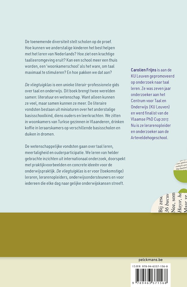 De vliegtuigklas is een unieke literair-professionele gids over taal en onderwijs. Dit boek brengt twee werelden samen: literatuur en wetenschap. Want alleen kunnen ze veel, maar samen kunnen ze meer. De literaire vondsten bestaan uit miniaturen over het anderstalige basisschoolkind, diens ouders en leerkrachten. We zitten in woonkamers van Turkse gezinnen in Vlaanderen, drinken koffie in leraarskamers op verschillende basisscholen en duiken in dromen.
