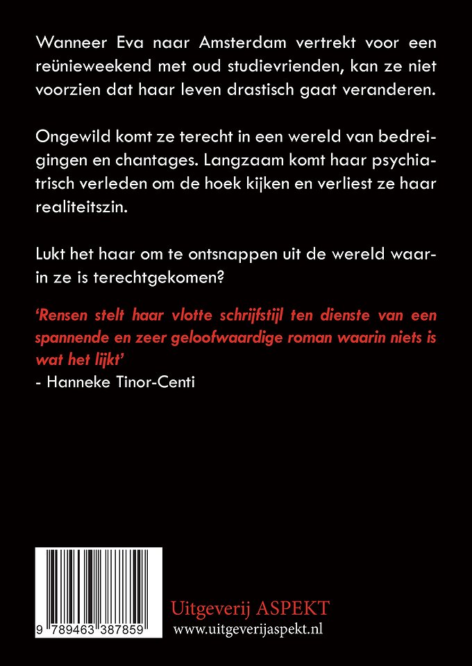 Wanneer Eva naar Amsterdam vertrekt voor een reünieweekend met oud studievrienden, kan ze niet voorzien dat haar leven drastisch gaat veranderen. Ongewild komt ze terecht in een wereld van bedreigingen en chantages.