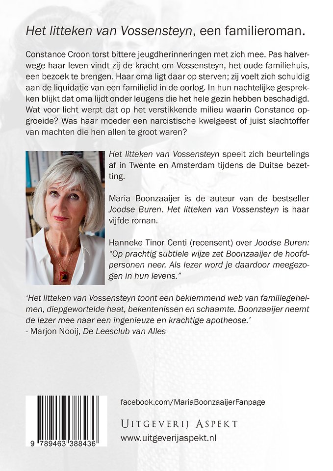 ‘Het litteken van Vossensteyn toont een beklemmend web van familiegeheimen, diepgewortelde haat, bekentenissen en schaamte. Boonzaaijer neemt de lezer mee naar een ingenieuze en krachtige apotheose.’