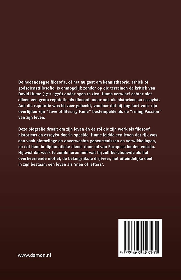 De hedendaagse filosofie, of het nu gaat om kennistheorie, wetenschapsfilosofie, ethiek of godsdienstfilosofie, is onmogelijk zonder op die terreinen de kritiek van David Hume (1711-1776) onder ogen te zien. Hume verwierf echter niet alleen een grote reputatie als filosoof, maar ook als historicus en essayist. Aan die reputatie was hij zeer gehecht, vandaar dat hij nog kort voor zijn overlijden zijn “Love of literary fame” bestempelde als de “ruling Passion” van zijn leven.