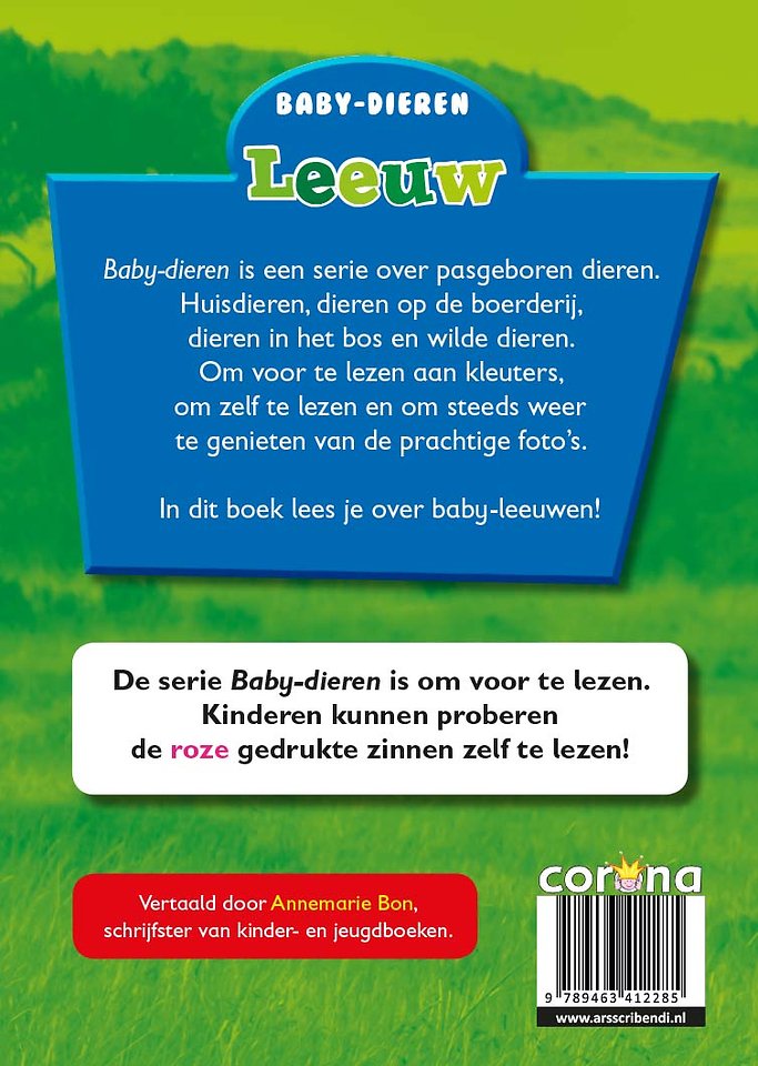Baby-dieren is een serie over pasgeboren dieren. Huisdieren, dieren op de boerderij, dieren in het bos en wilde dieren. Om voor te lezen aan kleuters, om zelf te lezen en om steeds weer te genieten van de prachtige foto's.