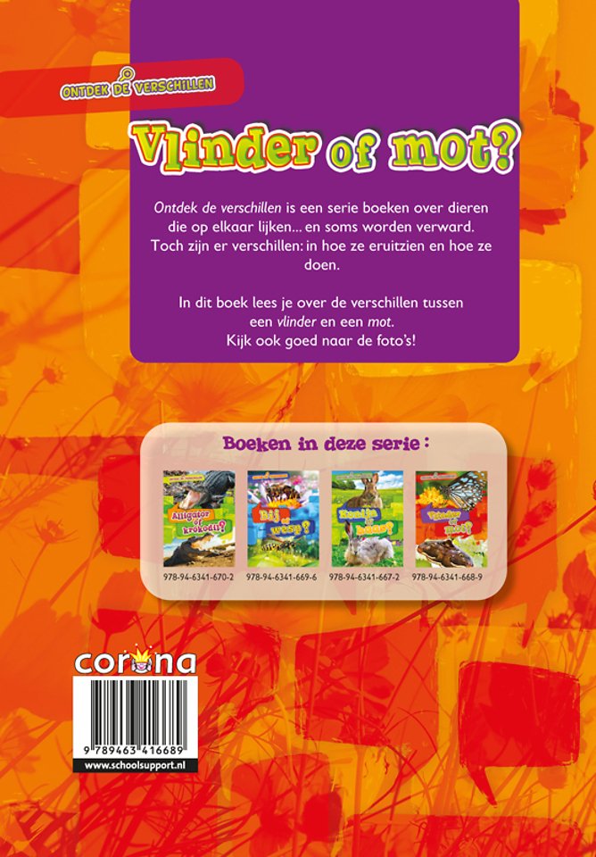 In dit boek lees je over de verschillen tussen een vlinder en een mot. Kijk ook goed naar de foto’s!