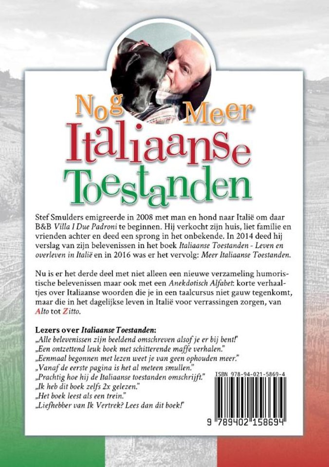 Stef Smulders emigreerde in 2008 met man en hond naar Italië om daar B&B Villa I Due Padroni te beginnen. Hij verkocht zijn huis, liet familie en vrienden achter en deed een sprong in het onbekende. In 2014 deed hij verslag van zijn belevenissen in het boek Italiaanse Toestanden - Leven en overleven in Italië en in 2016 was er het vervolg: Meer Italiaanse Toestanden.
