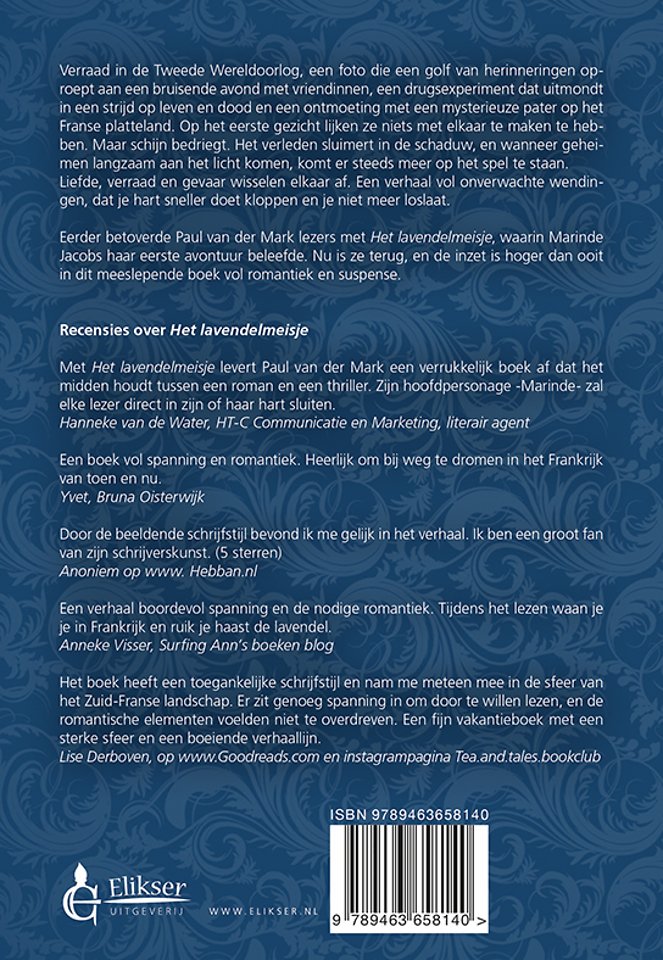 Eerder betoverde Paul van der Mark lezers met Het lavendelmeisje, waarin Marinde Jacobs haar eerste avontuur beleefde. Nu is ze terug, en de inzet is hoger dan ooit in dit meeslepende boek vol romantiek en suspense.