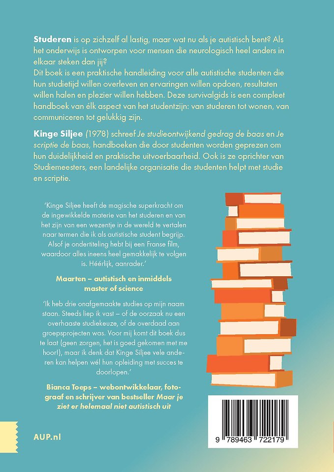 'Kinge Siljee heeft de magische superkracht om de ingewikkelde materie van het studeren en van het zijn van een wezentje in de wereld te vertalen naar termen die ik als autistische student begrijp. Alsof je ondertiteling hebt bij een Franse film, waardoor alles ineens heel gemakkelijk te volgen is. Héérlijk, aanrader.' - Maarten (autistisch en inmiddels master of science)