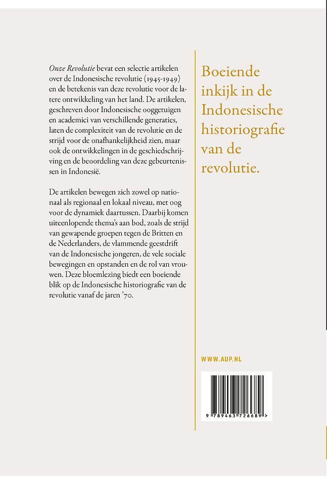 'Onze Revolutie' bevat een selectie vertaalde Indonesische artikelen over de Indonesische revolutie (1945-1949) en de betekenis van die revolutie voor de ontwikkeling van de natie. De artikelen – geschreven door tijdgenoten en academici van verschillende generaties – laten de complexiteit van de Indonesische revolutie en de strijd voor de onafhankelijkheid zien, en ook de ontwikkelingen in het Indonesische denken daarover.
