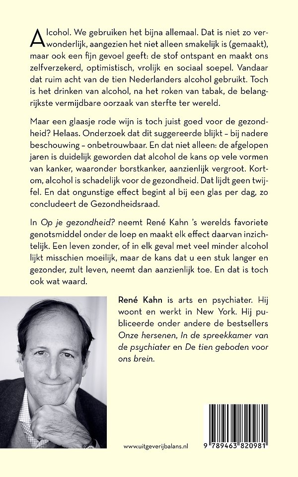 Alcohol. We gebruiken het bijna allemaal. Dat is niet zo verwonderlijk, aangezien het niet alleen smakelijk is (gemaakt), maar ook een fijn gevoel geeft: de stof ontspant en maakt ons zelfverzekerd, optimistisch, vrolijk en sociaal soepel. Vandaar dat ruim acht van de tien Nederlanders alcohol gebruikt. Toch is het drinken van alcohol, na het roken van tabak, de belangrijkste vermijdbare oorzaak van sterfte ter wereld.