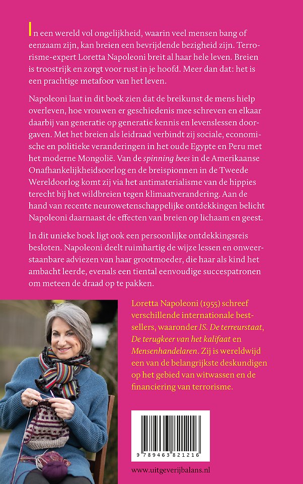 In een wereld vol ongelijkheid, waarin veel mensen bang of eenzaam zijn, kan breien een bevrijdende bezigheid zijn. Terrorisme-expert Loretta Napoleoni breit al haar hele leven. Breien is troostrijk en zorgt voor rust in je hoofd. Meer dan dat: het is een prachtige metafoor van het leven.