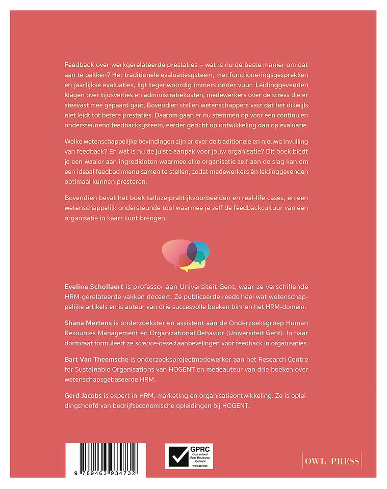 Welke wetenschappelijke bevindingen zijn er over de traditionele en nieuwe invulling van feedback? En wat is nu de juiste aanpak voor jouw organisatie? In dit boek bieden de auteurs een waaier aan ingrediënten aan waarmee elke organisatie zelf aan de slag kan om een ideaal feedbackmenu samen te stellen, zodat medewerkers én leidinggevenden optimaal kunnen presteren.