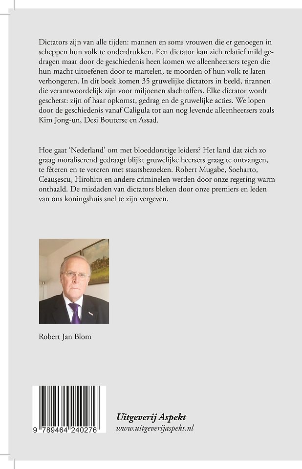 En hoe gaat ‘Nederland’ om met bloeddorstige leiders? Robert Mugabe, Soeharto, Ceaușescu, Hirohito en andere criminelen werden door onze regering warm onthaald. Het land dat zich zo graag moraliserend gedraagt, blijkt gruwelijke heersers graag te ontvangen, te fêteren en te vereren met staatsbezoeken.
