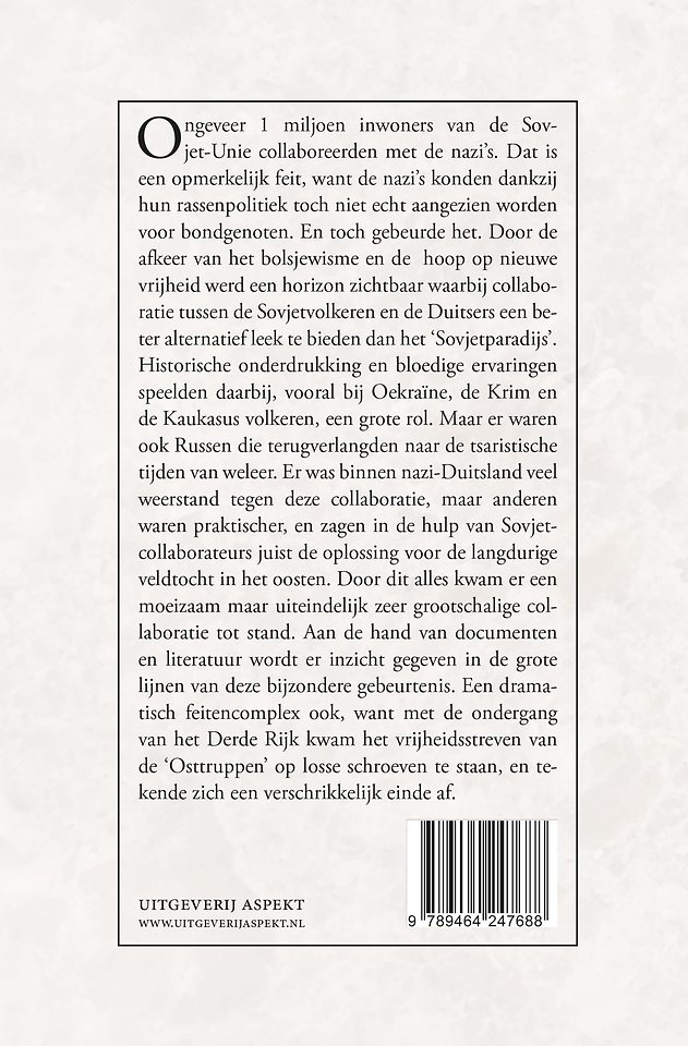 Met Hitler voor moedertje Rusland geeft aan de hand van documenten en literatuur inzicht in deze bijzondere geschiedenis. Het is een dramatisch feitencomplex, want met de ondergang van het Derde Rijk kwam het vrijheidsstreven van de ‘Osttruppen’ op losse schroeven te staan. Er tekende zich een verschrikkelijk einde af.