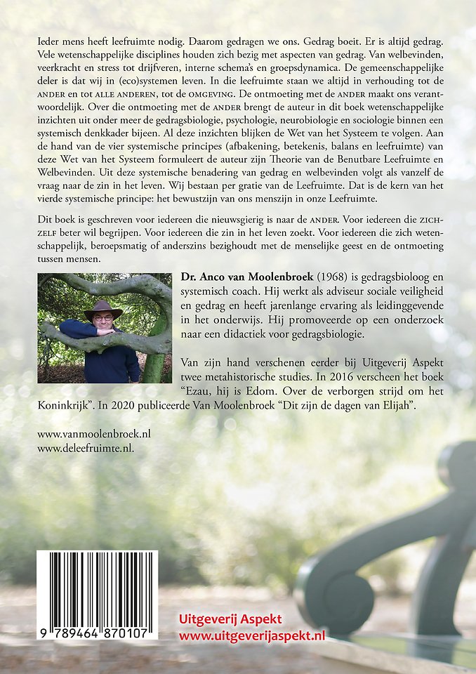 Al deze inzichten blijken de Wet van het Systeem te volgen. Aan de hand van de vier systemische principes (afbakening, betekenis, balans en leefruimte) van deze Wet van het Systeem formuleert de auteur zijn Theorie van de Benutbare Leefruimte en Welbevinden. Uit deze systemische benadering van gedrag en welbevinden volgt als vanzelf de vraag naar de zin in het leven. Wij bestaan per gratie van de Leefruimte. Dat is de kern van het vierde systemische principe: het bewustzijn van ons menszijn in onze Leefruimte.
