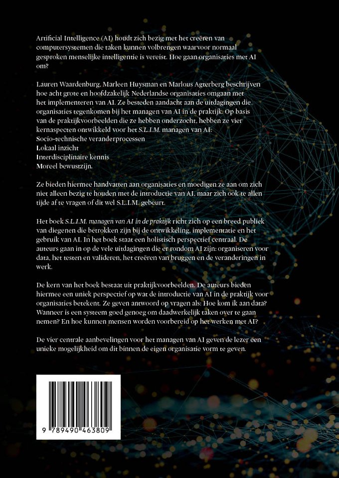 Lauren Waardenburg: ‘AI gaat in organisaties grote veranderingen teweegbrengen’ Hans van der Klis 7 mei 2021 Artificial intelligence wordt steeds breder toegepast binnen het werkproces. Dat kan niet zonder gevolgen blijven voor de manier waarop wij ons werk en onze organisaties hebben ingericht, stelt promovendus Lauren Waardenburg, auteur van Slim managen van AI in de praktijk. ‘Van vliegtuigmaaltijden tot criminaliteit, AI-systemen kunnen steeds meer voorspellen en dat leidt onherroepelijk tot veranderingen in onze organisaties.' Lees het volledige artikel