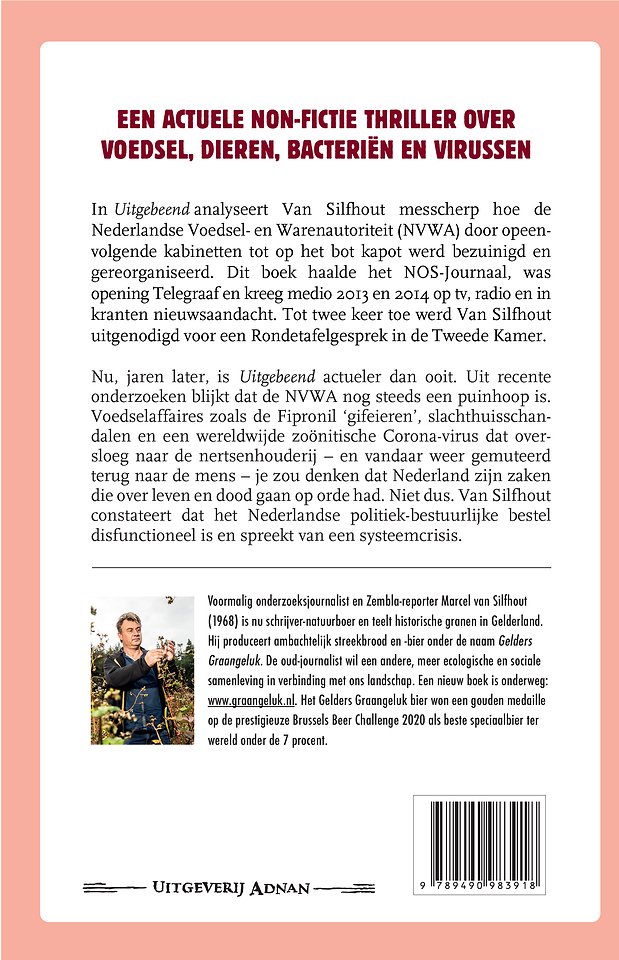 Nu, jaren later, is Uitgebeend actueler dan ooit. Uit recente onderzoeken blijkt dat de NVWA nog steeds een puinhoop is. Voedselaffaires zoals de Fipronil ‘gifeieren’, slachthuisschandalen en een wereldwijde zoönitische Corona-virus dat oversloeg naar de nertsenhouderij – en vandaar weer gemuteerd terug naar de mens – je zou denken dat Nederland zijn zaken die over leven en dood gaan op orde had. Niet dus. Van Silfhout constateert dat het Nederlandse politiek-bestuurlijke bestel disfunctioneel is en spreekt van een systeemcrisis.
