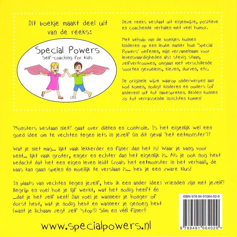 Dit is het 2e boekje uit de reeks 'Special Powers - Self-coaching for Kids'. De reeks bestaat uit eigenwijze, positieve en coachende verhalen met veel humor. Met behulp van de boekjes kunnen kinderen op een leuke manier hun 'Special Powers' oefenen, mijn verzamelnaam voor levensvaardigheden als: stevig staan, zelfvertrouwen hebben, omgaan met verschillende soorten gevoelens, kiezen, durven, etc. De verhalen gaan over situaties waar ieder kind wel eens mee te maken heeft, direct of indirect. Niet stigmatiserend dus!
